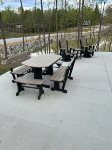 Convenience is key at Campsite #33, being the closest site to the bathhouse and showers, ensuring easy access to essential facilities. Adding to the comfort, the site features a picnic table with 4 benches that comfortably seats up to 8+ people, ideal for outdoor dining and gathering. Additionally, two rocking, swiveling, and gliding chairs with an end table offer a perfect spot to relax and enjoy the surroundings.